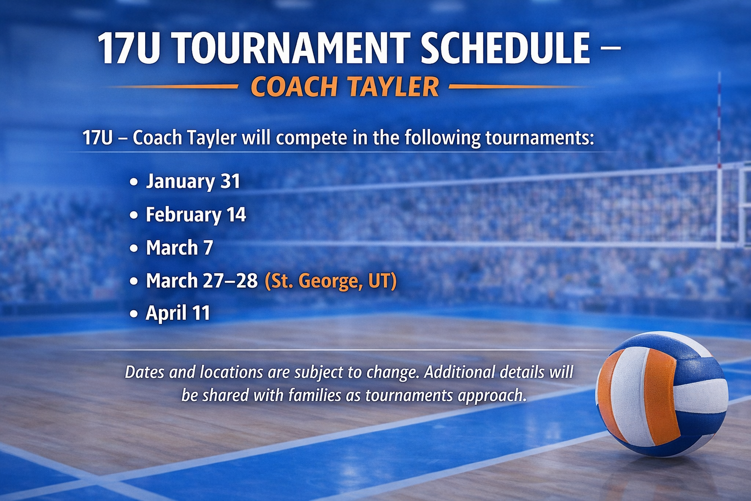 Schedule subject to change. Final rosters announced per event.